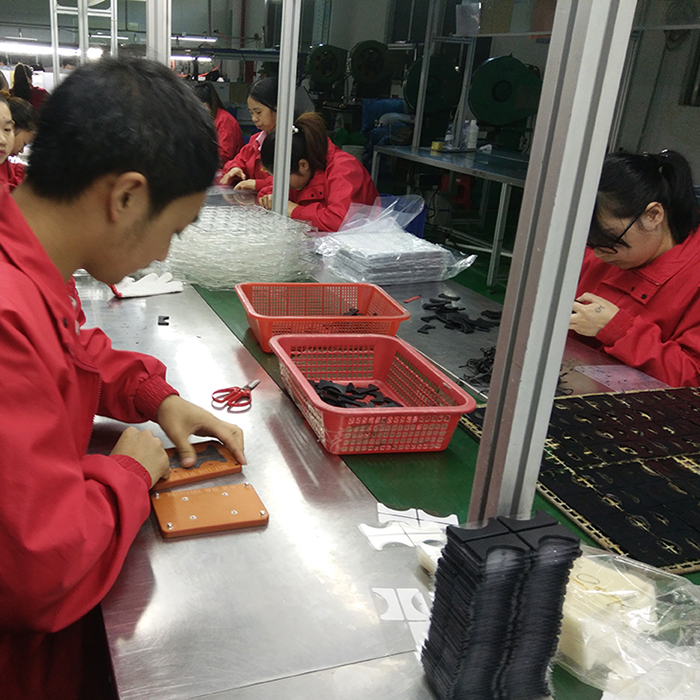 這款異形硅膠腳墊原料也是一款背3M膠硅膠制品,同樣是使用環(huán)保硅膠原材料,在成型模壓之后,由于表面沒有絲印工藝但是背部需要背膠,于是直接送到噴涂車間噴膠水,再拿到硅膠裝配車間拆邊,拆完邊裝配人員便根據(jù)治具手工背膠,廠內(nèi)人員200人量不是很大的時候我們?nèi)斯ぱb配效率更快,質(zhì)量更高,可以為客戶節(jié)約昂貴的機(jī)器成本。